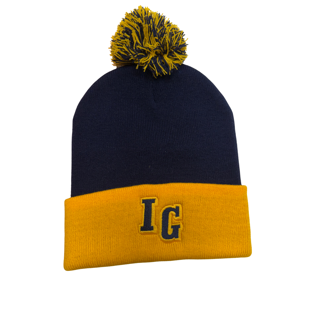 Navy/Gold Pom Beanie