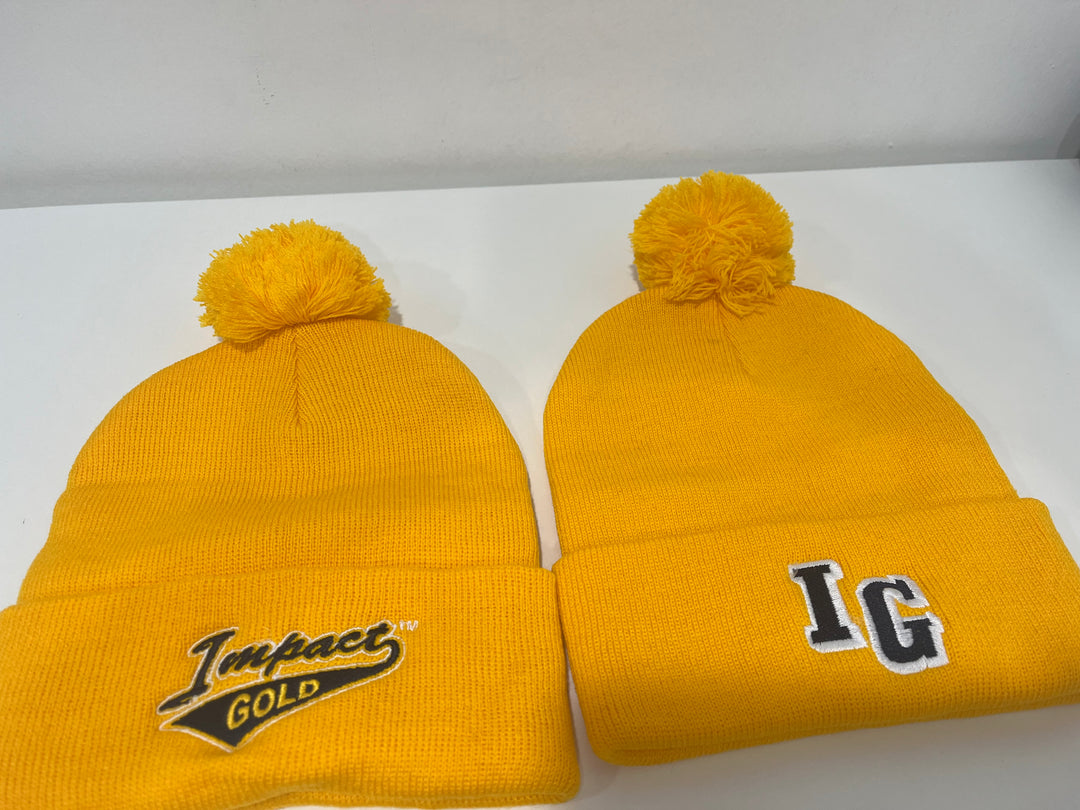 Gold Pom Beanie | 2 Logo Options